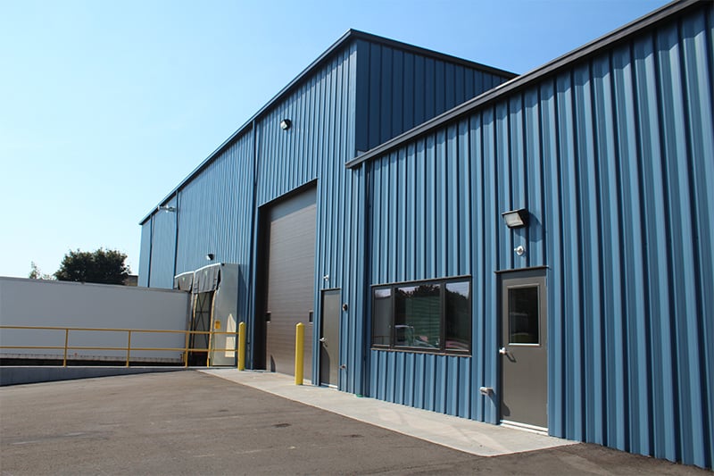 The original building was constructed in 1987 and had an expansion in 1998. Thirty-three years of exposure to the elements left the existing exterior wall panel faded and discolored. A.C.E. removed the existing wall panel, gutter, downspout, overhead doors, and door seals from the front face of the building to create a continuous, fresh appearance.